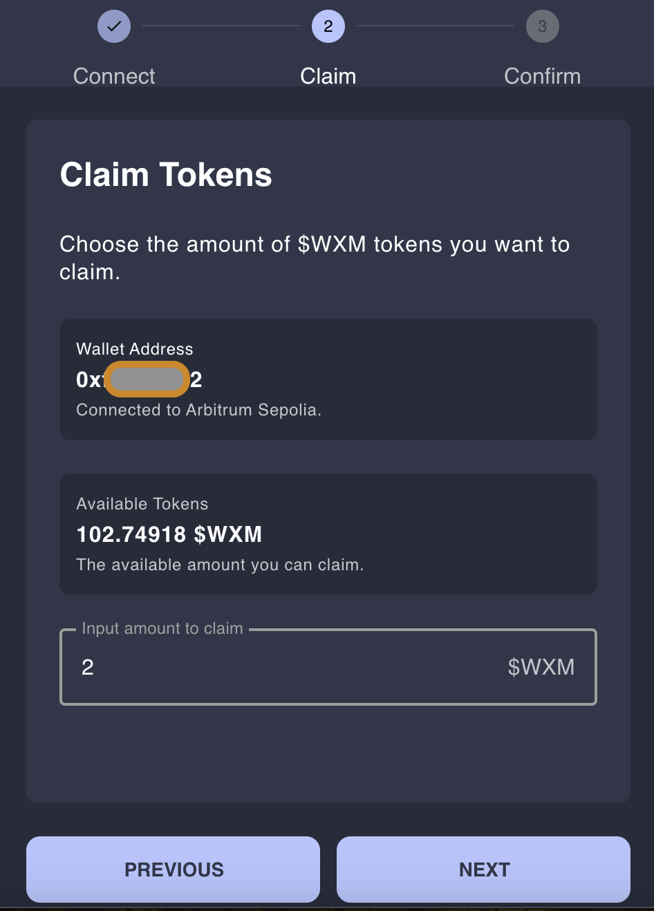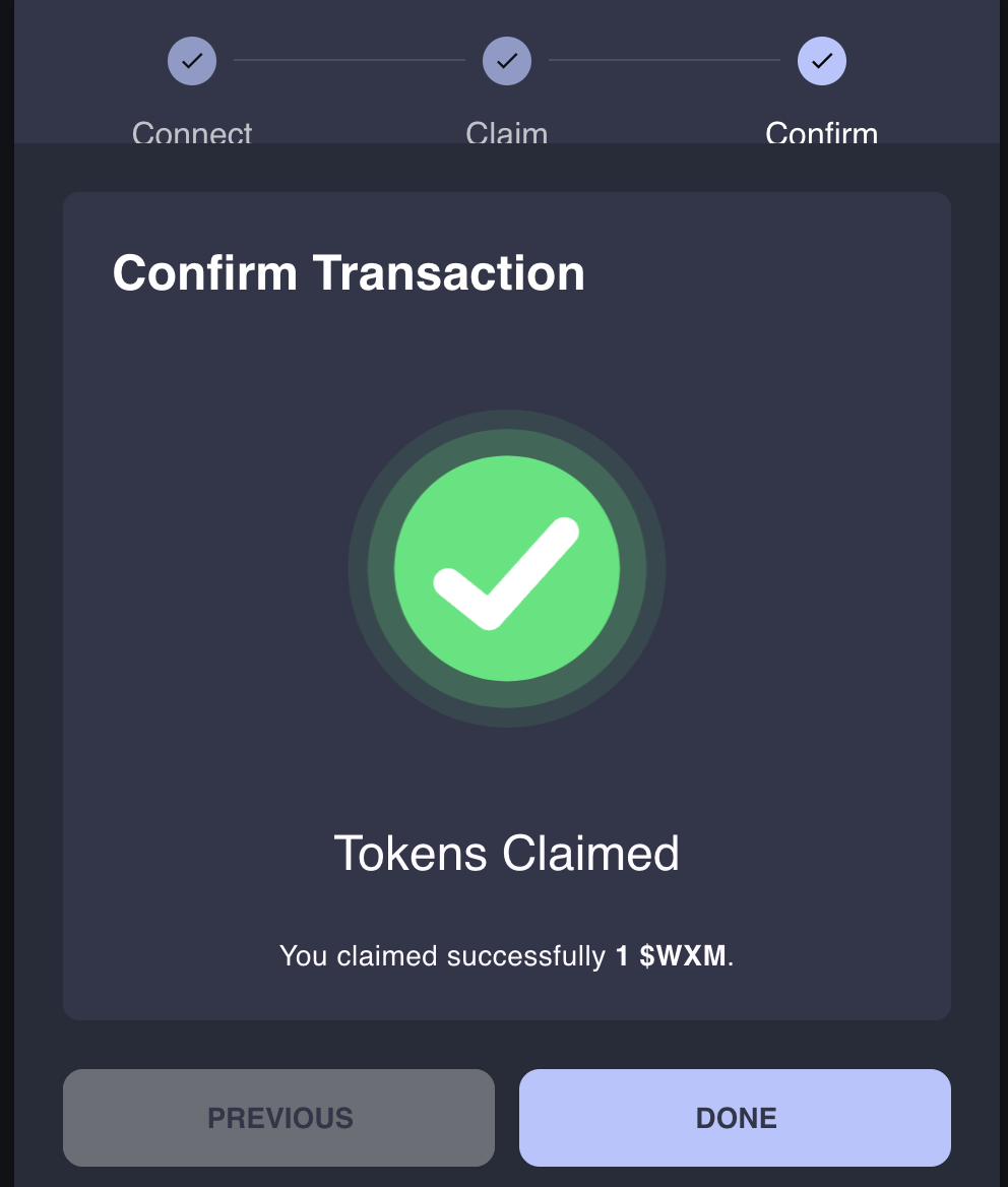 In order to claim your $WXM rewards: